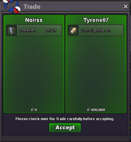 Start : 100k Min bid : 20k No insta End Point: 48 hours (after start price is met) ACCEPTED PAYMENT METHODS : - Coin Capsule = 480K PokeDollars - IV Reroll Ticket = 670K PokeDollars - Nature Reroll Ticket = 335K PokeDollars