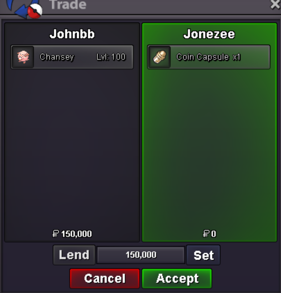 Auction Details: Start Price: 1m End Point: 48 hours (after start price is met) Insta Price: 10m Minimum Raise: 100k Accepted Payments: Pokedollars, Coin Capsules (x1 Coin Capsule = 500k), IV Reroll Tickets (x1 IV Reroll Ticket = 725k) Important Reminders: -This is a Gold Server auction. You may bid from any server, but you are responsible for transfer upon winning. -If you intend to purchase with an alt account, specify the account alongside your bid. -If a bid is received in the final 15 minutes of the auction, the end point will be delayed by 15 minutes from that bid, and will be delayed by 15 minutes for each new bid thereafter, until the current offer has been held for a full 15 minutes