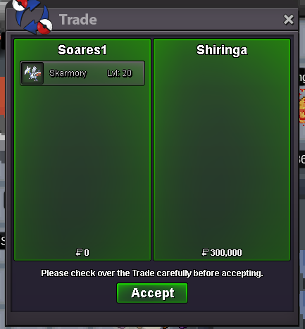 Hello @Leonardosenpai & @Gracee I have force the trade of the Auction here. 10k have been deducted from @Gracee's Account. 10k have been added to @Leonardosenpai's Account. Abra, both Gible, Sableye, Horsea, Zorua and Magbye has been transfered to @Gracee's Account. In the future if you need help, please use the report button. Kinda Regards Glitterwing