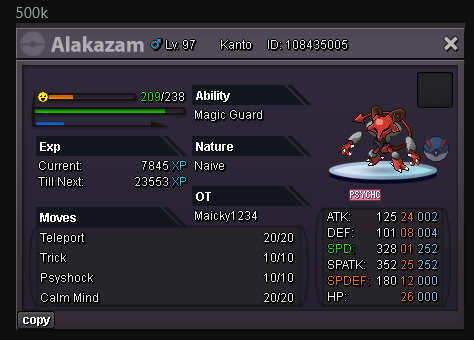S.O. 300k Min. Bid: 50k Duration: 48 Hours after started Payment: Pokedollars, or rerolls (750k each)