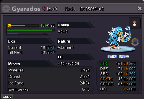 Pokemon De-level: Hello , i just got a new Moxie Gyarados for Trainer Tower but unfortunately I leveled it early in the morning before coffee , and I got it to level 40 while I meant for it to stay level 39. I would love it if someone could revert it to level 39. If it cant be done , its my mistake and completely understand! Gold Server.