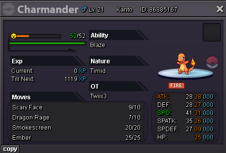 Hello i'm selling this Charmander max speed Auction details : - Start price : 400k - End point : 24 hours after auction was started - Insta price : No insta - Minimum Raise : 50k - Accepted payments: Pokedollars, Coin capsules (475k each), IV reroll tickets (720k each) Good luck everyone