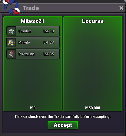 Start : 100k Min bid : 20k No insta End Point: 48 hours (after start price is met) ACCEPTED PAYMENT METHODS : - Coin Capsule = 480K PokeDollars - IV Reroll Ticket = 670K PokeDollars - Nature Reroll Ticket = 335K PokeDollars