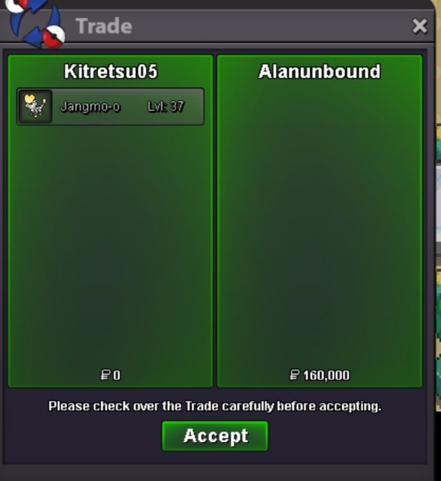 Auction Details Start Price: 100k End Point: 24 Hours (after start) Insta Price: 2.5m Minimum Raise: 50K Accepted Payments: Pokedollars / cc = 500k each Server Name: gold Important Reminders This is a Gold Server auction. You may bid from any server but you must transfer to Gold Server upon winning the auction. If you intend to purchase with an alternate account or from other server, please specify the account name and/or server name alongside your bid. 15 minutes rule is applied. (If a bid is received in the final 15 minutes of the auction, the end point will be delayed by 15 minutes from that bid, and will be delayed by 15 minutes for each new bid thereafter, until the current offer has been held for a full 15 minutes) Please check the Trade Rules and Auction Rules if you are new to trading in PRO