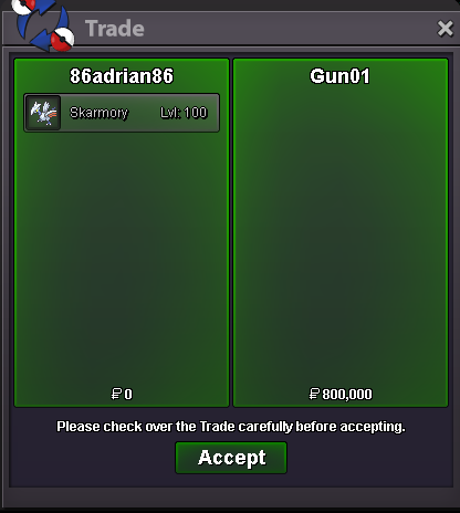S.o: 450k Min Bid: 100k Time after 1st Offer: 48 Hrs. Accepted Payments: Pokedollars, CC (500k) & IV RR (700k)