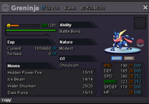 Samarah started following [Auction] [Silver] Modest Battle Bond Greninja hp fire +20 all