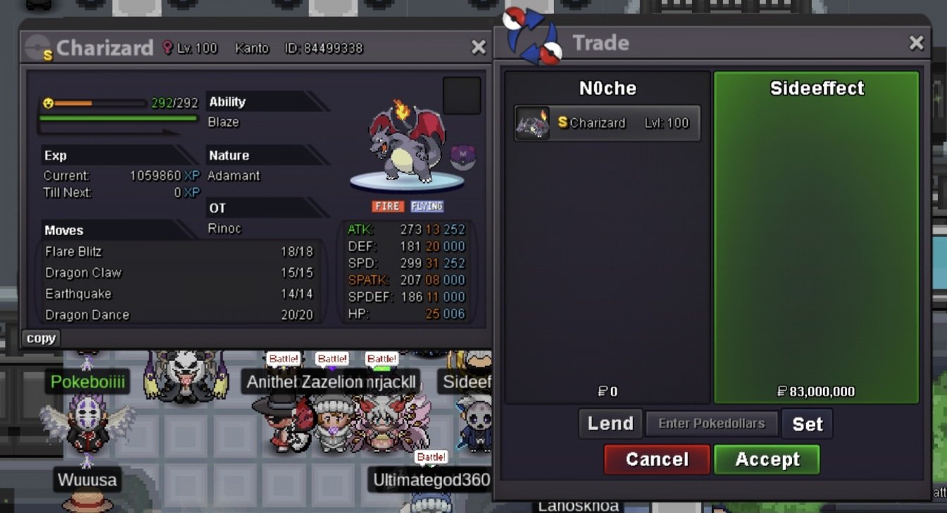 Bundle Auction Detail S.O : 50k Min bid : 50k INSTA : 1m Time Auction : 24 hours after first bid Started: 10:02 PM GM +7 (November 19) Ends: 10:02 PM GM +7 (November 20) C.O 150k By Prinse Reminder: 1) if bid is placed within last 15 mins of the auction, auction end time will be extended by 15 mins from that bid 2) Gold players can bid however please state that you will be transferring 3) This is a bundle, the winner will get all the pokemons ACCEPT: - Pokedollar