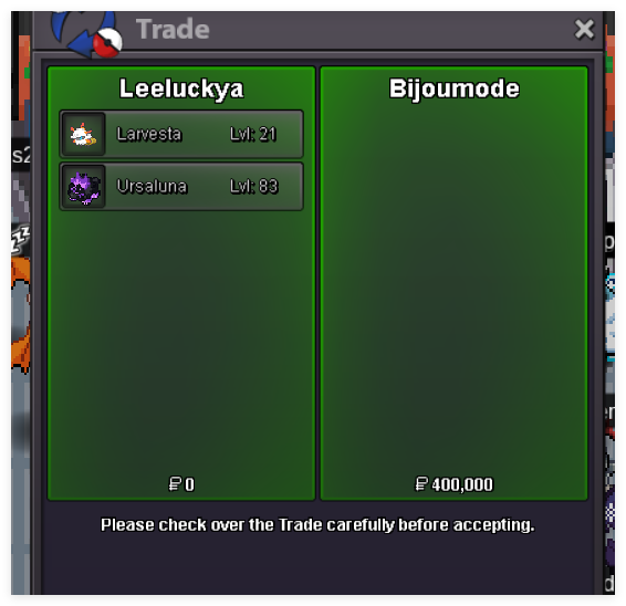 startprice: 1m Min raise: 200k Time: 48h after time is met( just meet kanto or johto) 15 min rule active Accept rr/cc=500k no insta price: