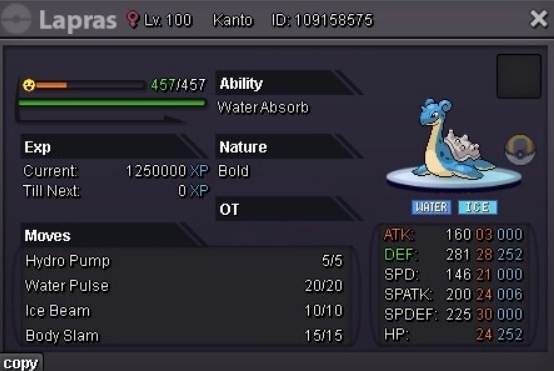 Epic Lapras S.O: 300k Ends: 48h Insta: 2.5m Minimum Bid: 100k Accepted Payments: Pokedollars, IV Reroll Tickets (x1 IV Reroll Ticket = 680k) 15-minute extension rule Bid here or in-game
