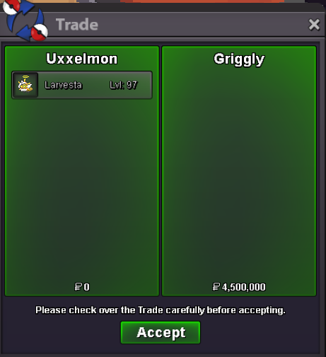 Auction Details: Start Price: 8m End Point: 48 hours (after start price is met) Insta Price: 15m Minimum Raise: 100k Accepted Payments: Pokedollars --- Reroll tickets = 750k each --- Coin capsules = 500k each --- Rc = 5k each Important Reminders: This is a gold Server auction but You may bid from any server, and I will transfer to your preferred server upon winning. If you intend to purchase with an alt account, specify the account alongside your bid. If a bid is received in the final 15 minutes of the auction, the end point will be delayed by 15 minutes from that bid, -