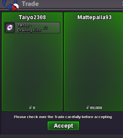 10. start offer first skarmory 1M min raise : 100k Insta Price: 4M auction end : 24 hours after first bid --------------------------------------------------------------------------------- start offer second skarmory 500k min raise : 50k Insta Price: 2M auction end : 24 hours after first bid ALL AUCTION RULES APPLIES (INCLUDING 15 MIN RULE) You can bid from gold but have to transfer if you won ACCEPTED PAYMENTS : Coin Capsule: 500k Pokedollars Nature Reroll: 375k IV Reroll: 750k