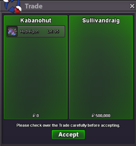 Start Price: 2m End Point: 48 hours (after start) No Insta Min Raise: 200k Accepted Payments: Pokedollars, Coin Capsule = 500k, IV Reroll Ticket = 700k