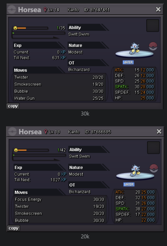 Bicharizard's Shop IGN: Bicharizard Accepted Payments Pokedollar Coin Capsule = 450k Reroll Ticket = 750k Nature Reroll Ticket = 350k Rare Candy = 6k Shop Rules 1. The offer posted can not be changed and cancelled. 2. This is a Gold server shop so I do not transfer to Silver. 3. Price are negotiable, feel free to contact me in game or on the forum. 4. Fake, scam or obscene comments will be reported. 5. Please use English only. Trained Pokemons Untrained Pokemons