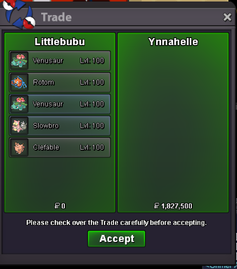 Auction Details: Start Price: 200k End Point: 24 hours (after start price is met) Insta Price: N/A Minimum Raise: 100k Accepted Payments: Pokedollars, Coin Capsules (x1 Coin Capsule = 480k), IV Reroll Tickets (x1 IV RerolTicket = 750k) Important Reminders: If a bid is received in the final 15 minutes of the auction, the end point will be delayed by 15 minutes from that bid, and will be delayed by 15 minutes for each new bid thereafter, until the current offer has been held for a full 15 minutes.