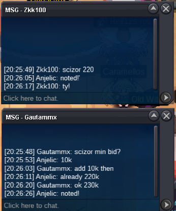 Start Price: 200k End Point: 48 hours (after start price is met) No insta Minimum Raise: 50k Accept: cc 450k, rr iv 700k ***15 minute forum auction rule: if a bid is received in the final 15 minutes of the auction, the end point will be delayed by 15 minutes from that bid, and will be delayed by 15 minutes for each new bid thereafter, until the current offer has been held for a full 15 minutes.