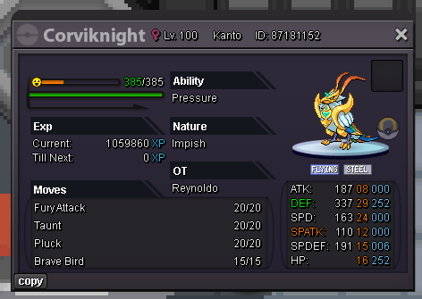 Lacomus started following [PvPable] Xmas Corviknight (Impish, Pressure) | Matching Ball