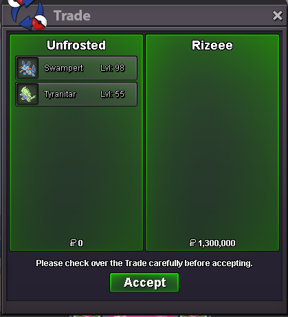 S.O 2.5m Min. Bid 100k Insta 6m Auction Ends 24hrs after the s.o is met [15 min. rule applied] Accepting pokedollars/cc=500k/rr ticket=750k This is a GOLD server auction, silver players must transfer if they win GL Everyone! -