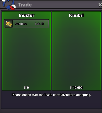 Hi, I have forced the trade for the Ninjask. @Parth0315You have received the Ninjask, and 150k has been deducted from your balance @Pinkorabane150k has been put into your balance Best of luck -Opacity