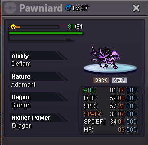 Auction Details Start Price: 10m End Point: 48 Hours (after start) Insta Price: no insta Minimum Raise:100k Accepted Payments: Pokedollars / cc- 500k each Important Reminders This is a Silver Server auction. You may bid from any server but you must transfer to Silver Server upon winning the auction. If you intend to purchase with an alternate account or from other server, please specify the account name and/or server name alongside your bid. 15 minutes rule is applied. (If a bid is received in the final 15 minutes of the auction, the end point will be delayed by 15 minutes from that bid, and will be delayed by 15 minutes for each new bid thereafter, until the current offer has been held for a full 15 minutes) Please check the Trade Rules and Auction Rules if you are new to trading in PRO