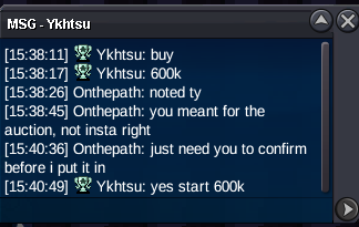 Start 2m Min Raise: 200k Auction Duration: 24 hours from first bid insta 7m Accepted payments Coin Capsule = 500k Reroll Ticket = 700k Contact DISCORD: banhvn11 If you intend to purchase with an alt account, specify the account alongside your bid. If a bid is received in the final 15 minutes of the auction, the end point will be delayed by 15 minutes from that bid, and will be delayed by 15 minutes for each new bid thereafter, until the current offer has been held for a full 15 minutes.