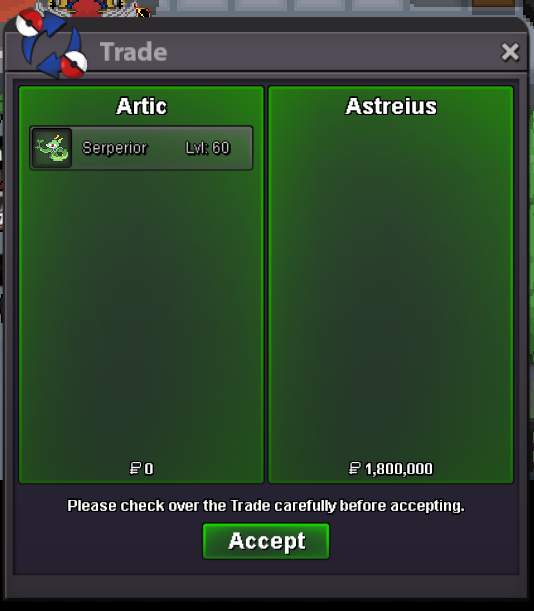 Auction Details Start Price: 8m End Point: UK time 8pm Thursday Insta Price: N/A Minimum Raise: 500k Accepted Payments: Pokedollars/Items You can also pay with these (max 20% of total price) Reroll Ticket: 700k each. Nature Reroll: 350k each. Coin Capsule: 450k each. Important Reminders This is a Cross Server auction. You may bid from any server, I will transfer to your preferred server upon winning if you intend to purchase with an alt account, specify the account alongside your bid. If a bid is received in the final 15 minutes of the auction, the end point will be delayed by 15 minutes from that bid, and will be delayed by 15 minutes for each new bid thereafter, until the current offer has been held for a full 15 minutes.