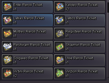 I have a lot of specific rerolls that I can't use because I don't have those pokemon. I have an idea how to exchange these rerolls for normal rerolls. Like 3 specific rerolls for a normal reroll.