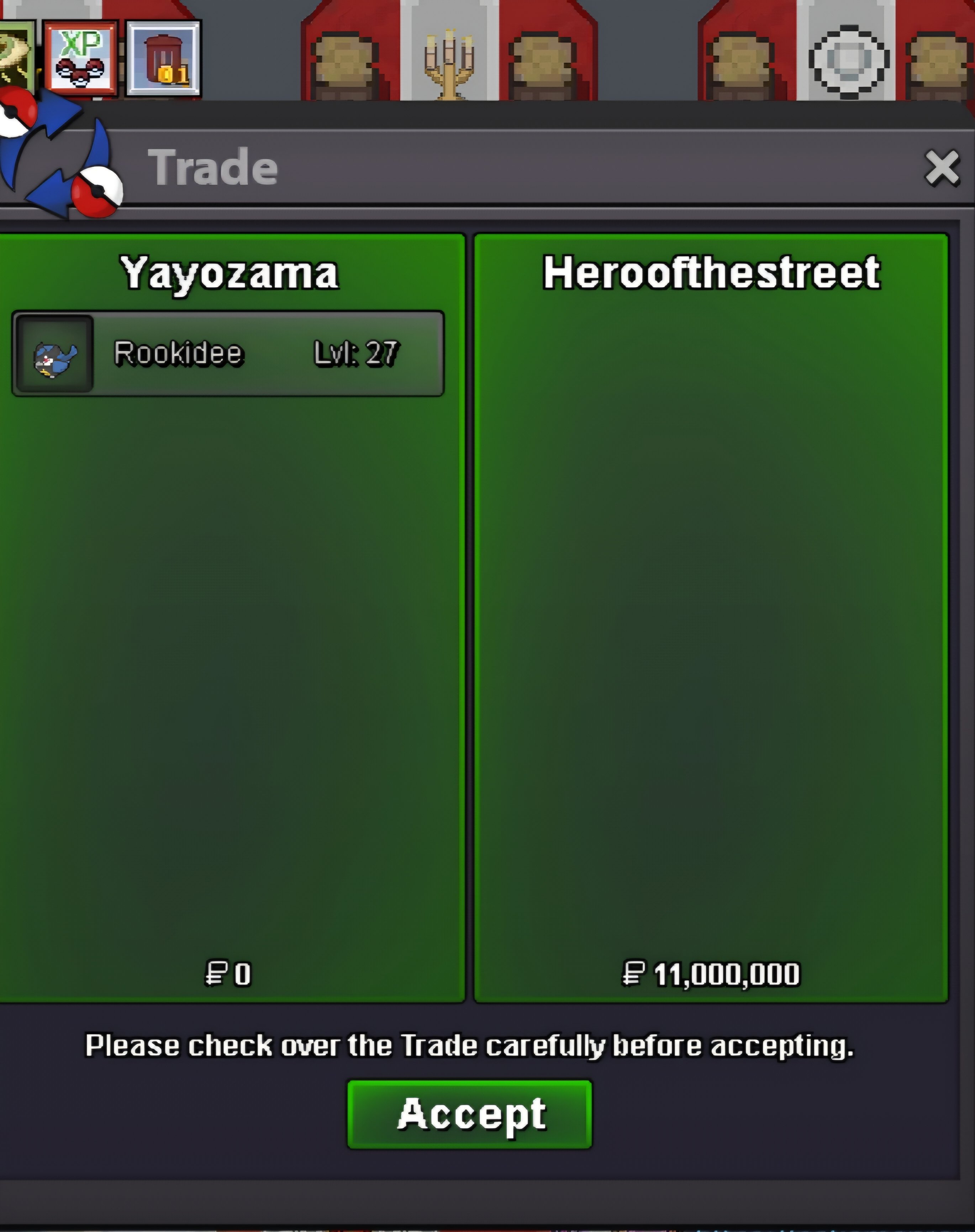 Auction Details Start Price : 250k Insta Price : N/A Current Price : 200k by Terryvh2 Min Raise : 50k End Point : 48hr after start price IGN : Lor3hcc Accepted Payments Pokedollars Coin Capsule (500k ea) Reroll Ticket (750k ea)