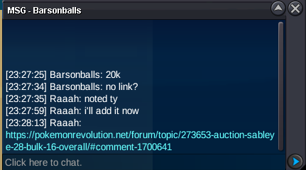 Start Price: 100k each End Point: 48 hours (after start price is met) each Minimum Raise: 100k each Accepted Payments: Pokedollars, Coin Capsules (x1 Coin Capsule = 500k), IV Reroll Tickets (x1 IV Reroll Ticket = 700k) Important Reminders: This is a Cross Server auction. You may bid from any server, and I will transfer to your preferred server upon winning. If you intend to purchase with an alt account, specify the account alongside your bid. If a bid is received in the final 15 minutes of the auction, the end point will be delayed by 15 minutes from that bid, and will be delayed by 15 minutes for each new bid thereafter, until the current offer has been held for a full 15 minutes.