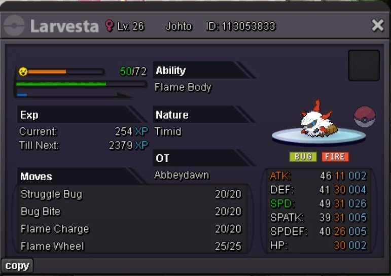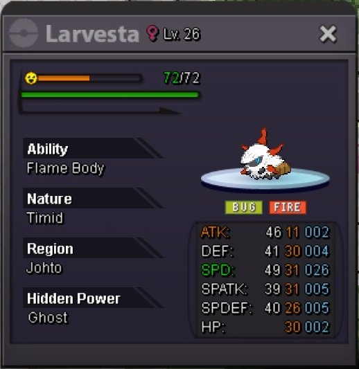 Godly Timid Larvesta (Volcarona) 2x+31 2x+30 IV