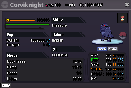 Levu started following Bold Corviknight auction 20+ def, spdef, hp
