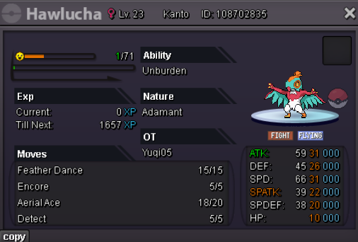 Yuqi05 started following Epic Hawlucha Unburden 31/31 Adamant