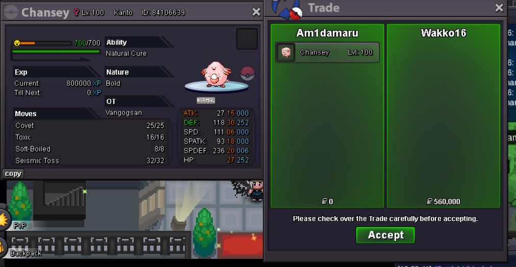 Details: Start Price : 5m Min Bid: 500k Insta: n/a End point: 48 hours after initial bid Accepted Payment: Pokedollars, Coin Capsules (x1 Coin Capsule = 500k) This is a silver Server auction. You may bid from any server but you must transfer to silver Server upon winning the auction. You may place bids here or in game. The 15 Minute rule will go into effect if a bid is placed in the last 15 minutes