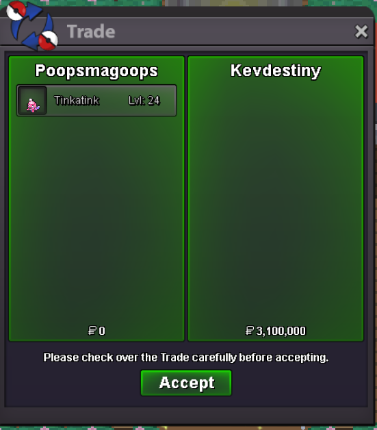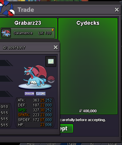 -Starting offer : 700k -Minimum raise : 100k -Starts after first bid -Ends in 48hours after the start -Insta :None ACCEPTED PAYMENT METHODS : PokeDollars - Coin Capsule = 490K - IV Reroll Ticket = 700K