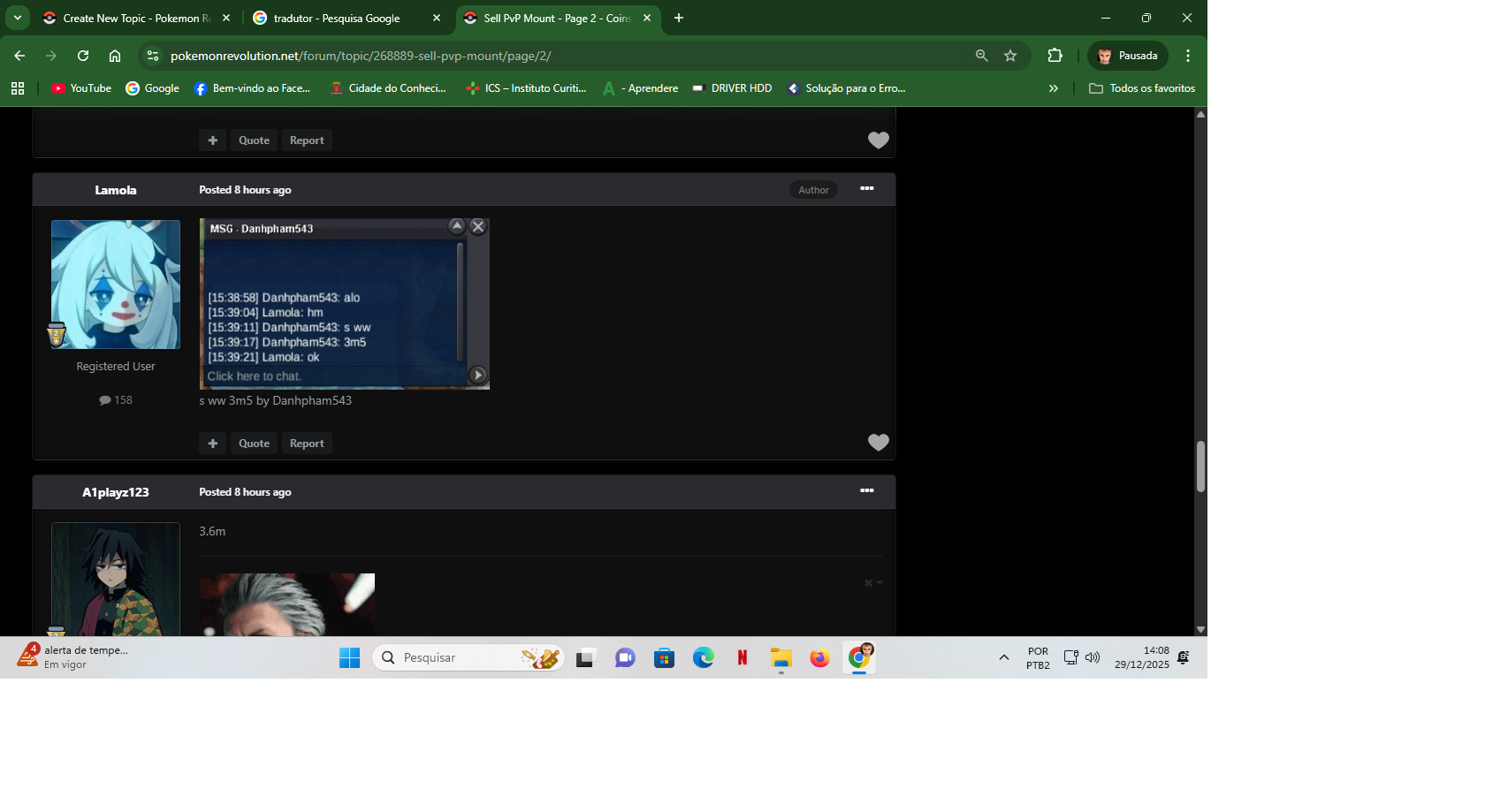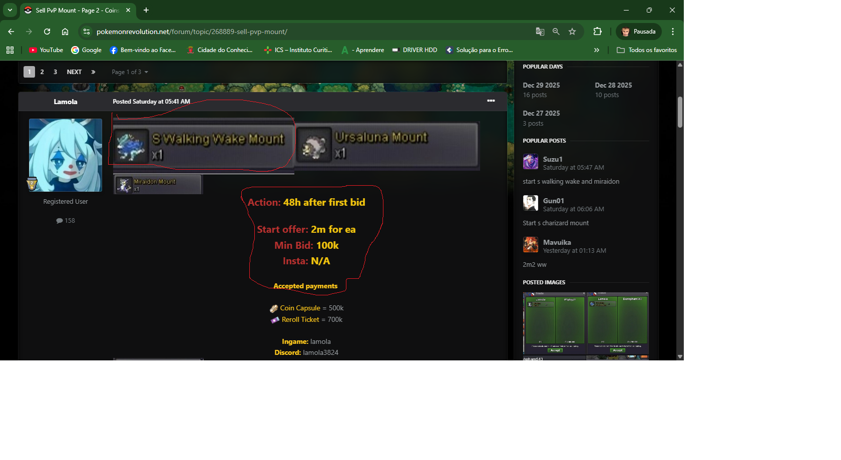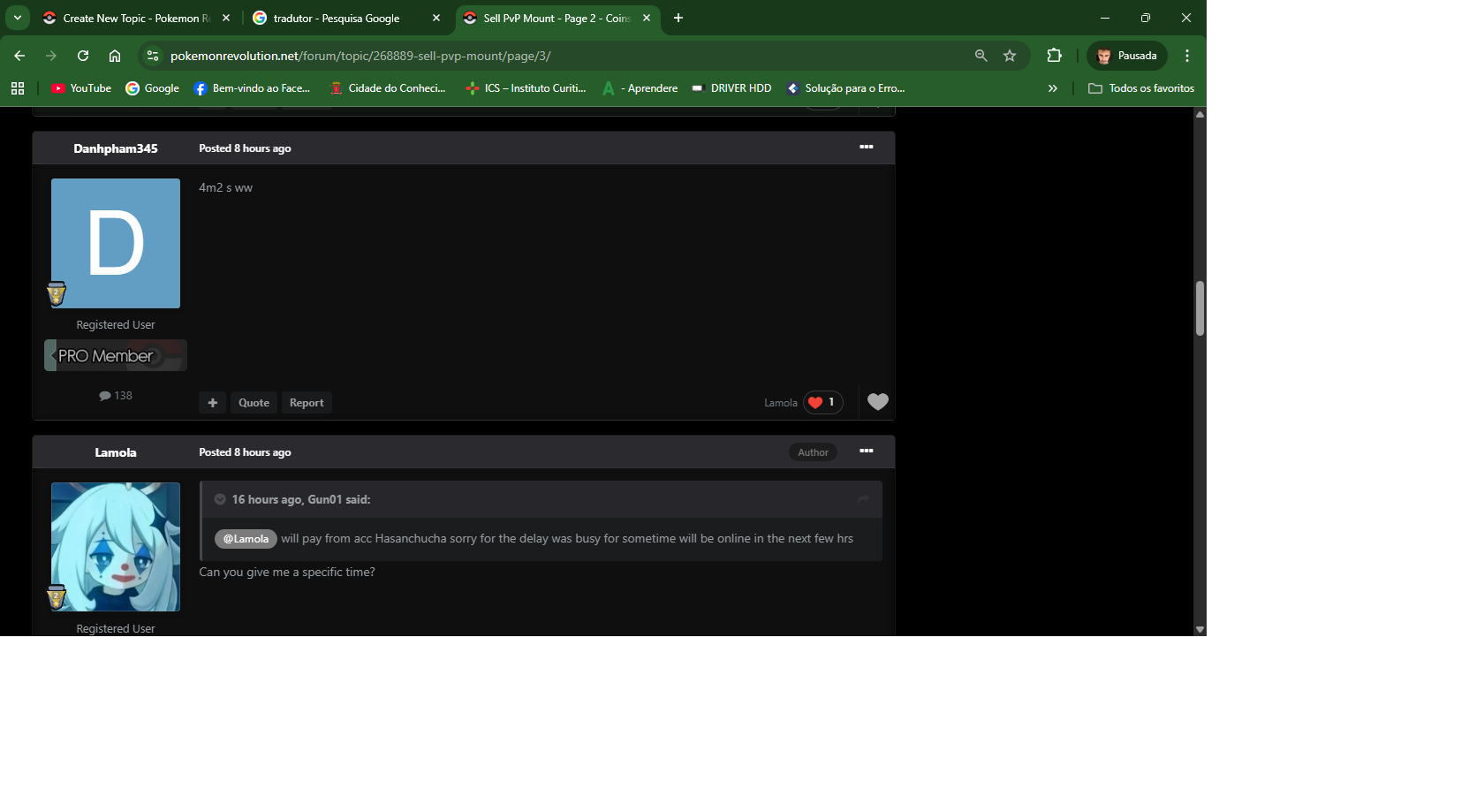 I want you to check the time Suzu sent the bid. There was a Wake diamond auction going on, which I waited 48 hours for, and I went to sleep an hour before it ended. His bid arrived 8 hours after my offer, but still within the closing time. However, the auction ended at 5:47 AM, as you can see from the start. After that time, 6 AM, it's not within the 48-hour auction window, and my offer remains the last one. start auction, time 48hrs, my offer, more bids, Here at this point I want you to check if the bid he offered is still within the time limit because he went to finalize the auction many hours after it ended and continues posting offers, not Suzu but the auction owner. If Suzu's offer isn't valid, I win. I want you to show me a screenshot of the exact time he sent his offer, just like in the start. https://pokemonrevolution.net/forum/topic/268889-sell-pvp-mount/page/3/ Sincerely, your auction buddy, Gralak21
