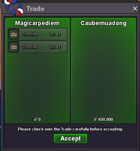 Auction Details Start Price: 100K End Point: 24 Hours (after start) End Time: TBA Insta Price: N/A Minimum Bid: 1K Accepted Payments: Pokedollars / 1x CC = 500K Server Name: Gold Important Reminders This is a Gold Server auction. You may bid from any server but you must transfer to Gold Server upon winning the auction. If you intend to purchase with an alternate account or from other server, please specify the account name and/or server name alongside your bid. 15 minutes rule is applied. (If a bid is received in the final 15 minutes of the auction, the end point will be delayed by 15 minutes from that bid, and will be delayed by 15 minutes for each new bid thereafter, until the current offer has been held for a full 15 minutes) Please check the Trade Rules and Auction Rules if you are new to trading in PRO. Note: Please read all the rules and details carefully before placing your bid.
