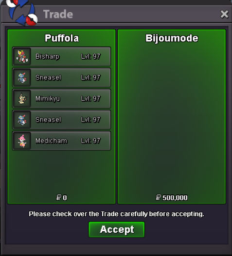 Hi, I have forced the outcome. @Jackstermac18k has been reduced from your balance, and you now have the mudkip. @Tgbnamish18k has been added to your balance. Best of luck -Opacity