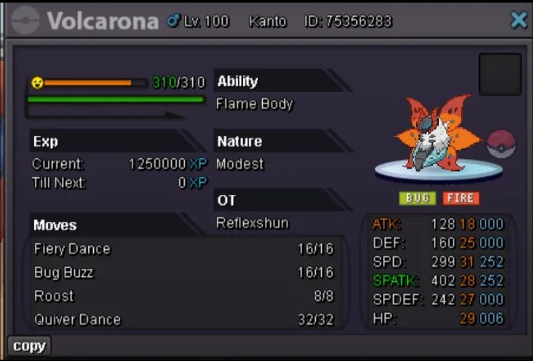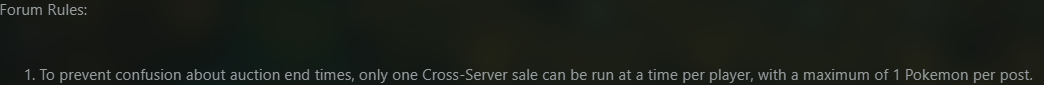 Auction Details: Start Price: 2.5m End Point: 48 hours (after start price is met) Minimum Raise: 250k Accepted Payments: Pokedollars, Coin Capsules (x1 Coin Capsule = 470k), IV Reroll Tickets (x1 IV Reroll Ticket = 700k), Nature Reroll Tickets (x1 Nature Reroll Ticket = 350k) Important Reminders: This is a Cross Server auction. You may bid from any server, and I will transfer to your preferred server upon winning. If you intend to purchase with an alt account, specify the account alongside your bid. If a bid is received in the final 15 minutes of the auction, the end point will be delayed by 15 minutes from that bid, and will be delayed by 15 minutes for each new bid thereafter, until the current offer has been held for a full 15 minutes.
