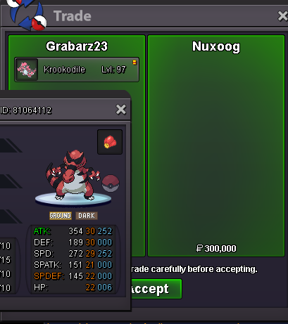 Auction Details: Start Price: 5m End Point: 48 hours (after start price is met) Minimum Raise: 250k Accepted Payments: Pokedollars, Coin Capsules (x1 Coin Capsule = 470k), IV Reroll Tickets (x1 IV Reroll Ticket = 700k), Nature Reroll Tickets (x1 Nature Reroll Ticket = 350k) Important Reminders: This is a Cross Server auction. You may bid from any server, and I will transfer to your preferred server upon winning. If you intend to purchase with an alt account, specify the account alongside your bid. If a bid is received in the final 15 minutes of the auction, the end point will be delayed by 15 minutes from that bid, and will be delayed by 15 minutes for each new bid thereafter, until the current offer has been held for a full 15 minutes.