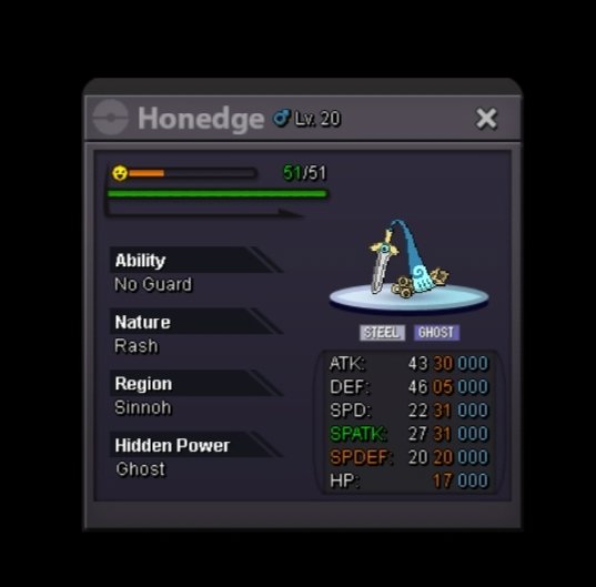 S.O: 500k Min Bid: 100k Time after first offer: 48 hours Accepted Payments: Pokedollars, Coin Capsules (500k), IV RR (700k) Moveset Ready. Good Luck