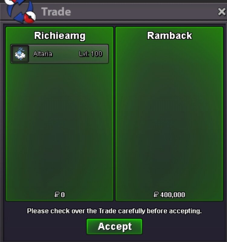 S.O = 500k Min bid = 100k // insta = N/A Auctions ends 48 hours after the starting offer is met The 15 minute rule is active Accepted payments = pokedollars OR cc (500k) each IGN - Aerionx10 Discord - aerionx3