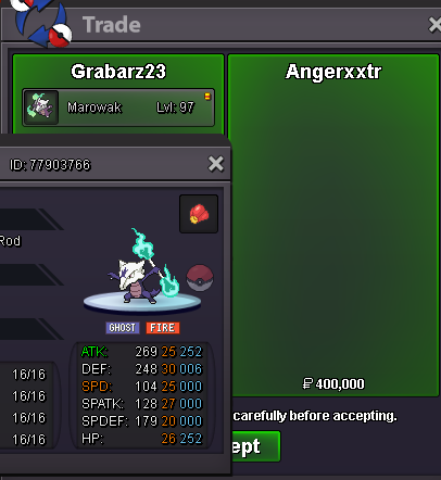 Start Price: 100k End Point: 24 hours (after start price is met) Minimum Raise: 100k Accepted Payments: Pokedollars, Coin Capsules (x1 Coin Capsule = 500k), IV Reroll Tickets (x1 IV Reroll Ticket = 750k) Important Reminders: This is a Cross Server auction. You may bid from any server, and I will transfer to your preferred server upon winning. If you intend to purchase with an alt account, specify the account alongside your bid. If a bid is received in the final 15 minutes of the auction, the end point will be delayed by 15 minutes from that bid, and will be delayed by 15 minutes for each new bid thereafter, until the current offer has been held for a full 15 minutes.