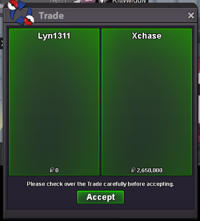 Hello @Prometheuss @Ynnahelle The auction outcome has been forced. @Prometheuss 17,050,000 has been added to your account. @Ynnahelle 17,050,000 has been taken from your alt account and you now have the Larvitar. I will now lock this thread as there is no further action to take. All the very best, - Rebilak