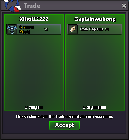 Auction Finish 48H after first bid Start Offer: 1M Min Bid: 100K Accepted Payments: Pokedollar Coin Capsule = 500k ____________________________________________________________________________________________