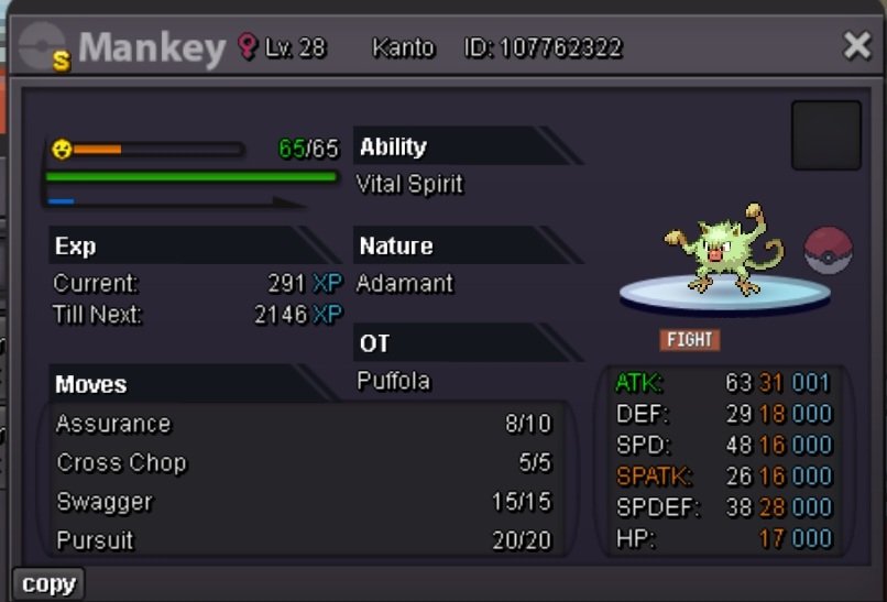 Puffola started following ADAMANT SHINY MANKEY 31ATK