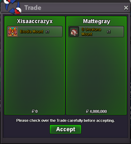 @Tempo420 I believe the transfers are disabled at the moment. However, I can complete the trade with my alt account "Sumocal" on Silver, if you are happy with this.