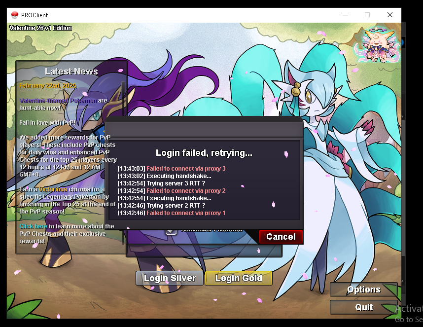 Hi, I just need help with this. For some reason I'm unable to log in with the new patch. It says Failed to connect to proxy..