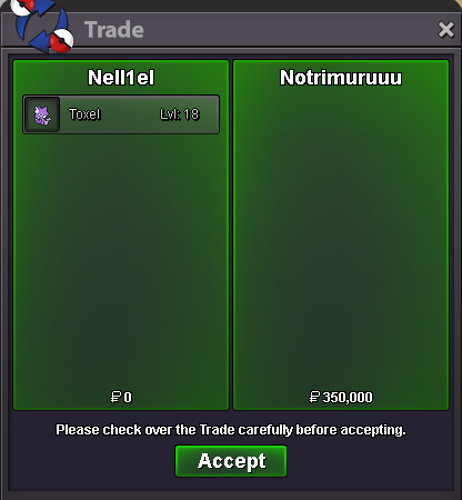 Start the auction Start: 100k Poke$ Minimum raise: 100k End Point: 48 hours (Since the start of the auction, 6PM GM+7) Insta Price: n/a Start: 100k Poke$ Minimum raise: 100k End Point: 48 hours (Since the start of the auction, 6PM GM+7) Insta Price: n/a Note: - Accepted Payments: Pokedollars, Reroll Ticket: 750k each, Coin Capsule: 500k each. - If a bid is received in the last 15 minutes of the auction, the closing time will be delayed by 15 minutes from that bid, and will be further delayed by 15 minutes for each subsequent new bid, until the current bid has remained unchanged for the full 15 minutes. - This is a Gold Server auction. If bidding from an alternative server, state that you will transfer upon winning. - Encourage c.o on the forum at the last minute to avoid delays, thanks!