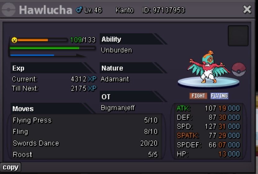 [Epic] Adamant Hawlucha — 31 SPD / 29 ATK (20+)