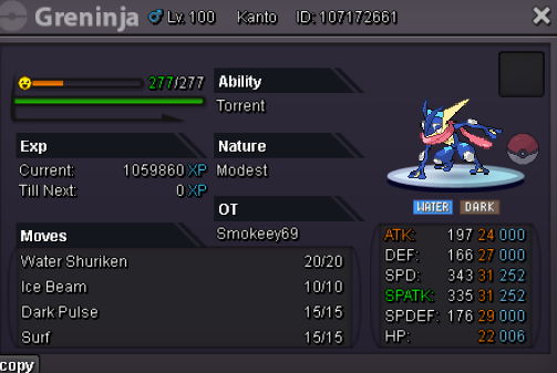 Start Price: 100k End Point: 48 hours (after start price is met) Minimum Raise: 100k Insta Price 3m Accepted Payments: Pokedollars, Coin Capsules (x1 Coin Capsule = 500k), IV Reroll Tickets (x1 IV Reroll Ticket = 700k) Important Reminders: This is a Cross Server auction. You may bid from any server, and I will transfer to your preferred server upon winning. If a bid is received in the final 15 minutes of the auction, the end point will be delayed by 15 minutes from that bid, and will be delayed by 15 minutes for each new bid thereafter, until the current offer has been held for a full 15 minutes.