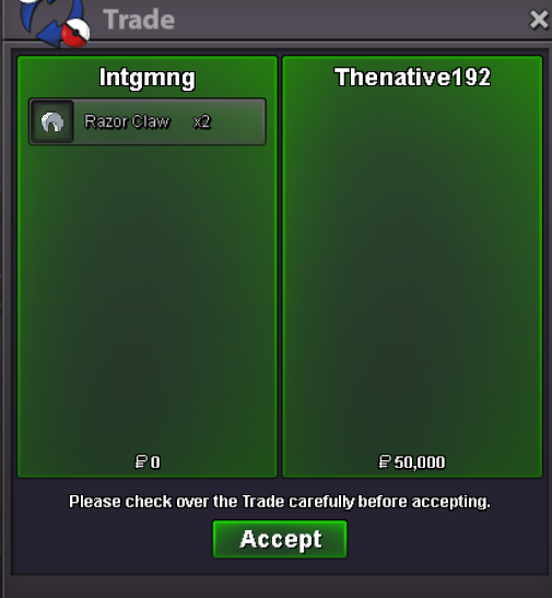 Hello @Gialos, In the future, please ensure that you assign a value to accepted payments (that are not pokedollars). For example: Coin Capsule = 500k Sincerely, Tandemaus -